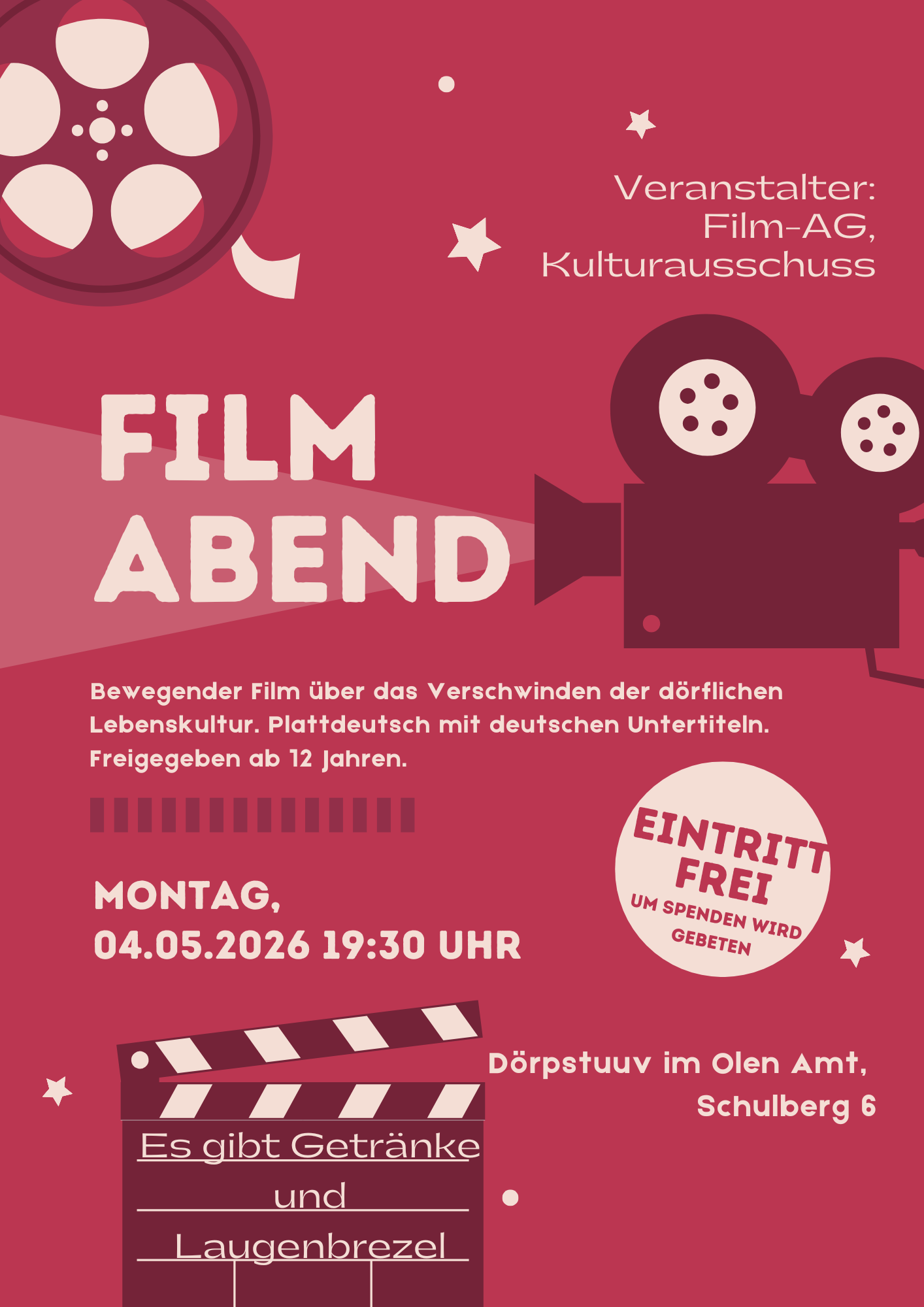 Filmabend am 4.5. um 19:30 Uhr in der Dörpstuuv im Olen Amt.