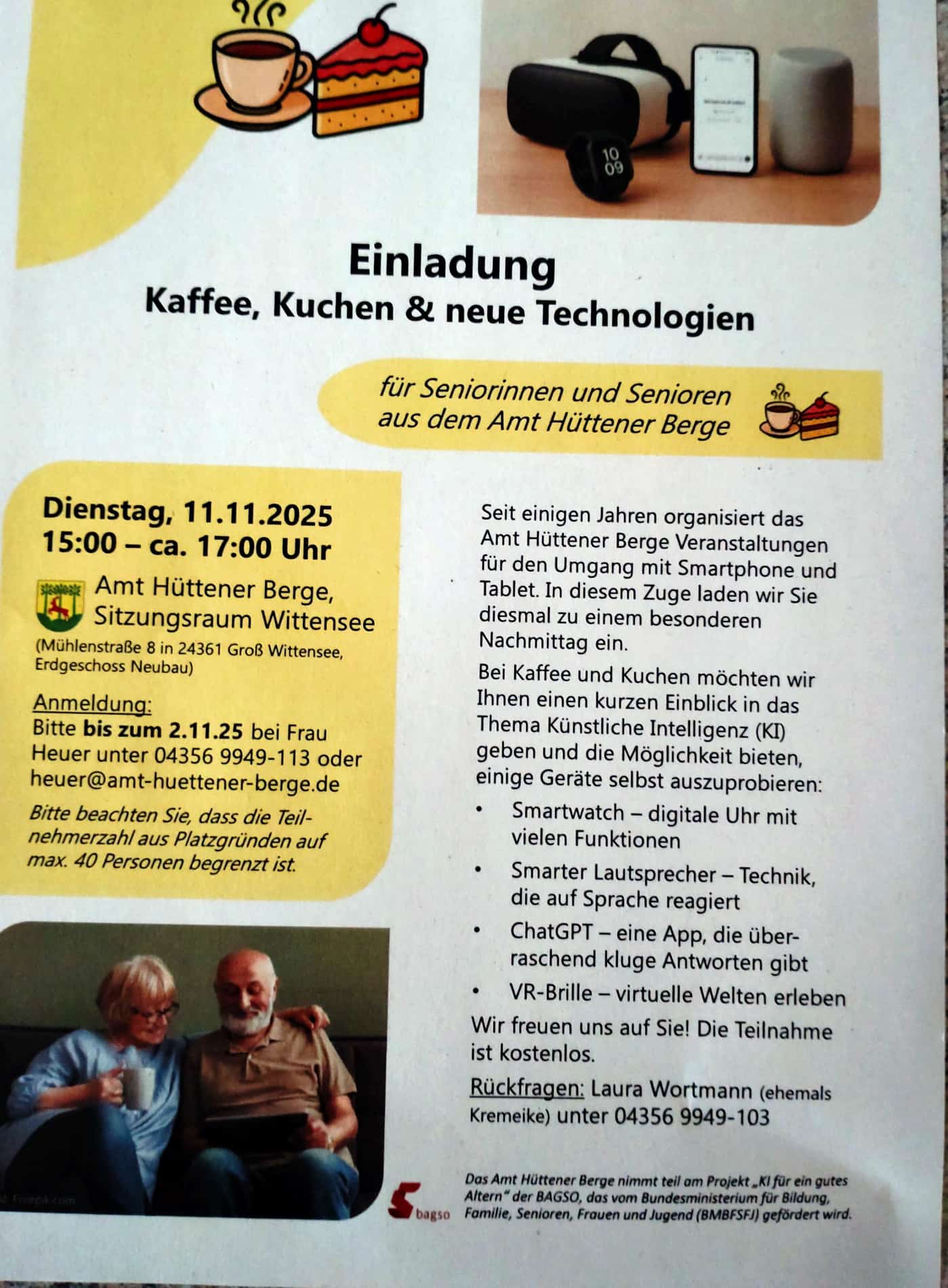 Kaffee, Kuchen und neue Technologien für Seniorinnen und Senioren am 11.11.2025 in Groß Wittensee